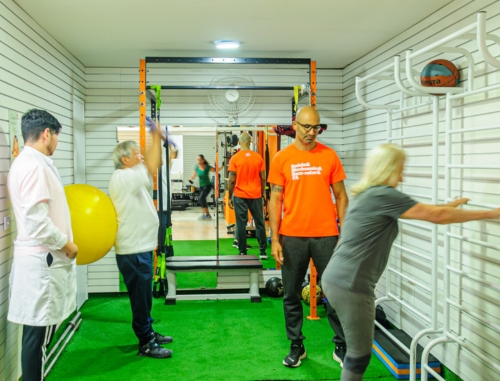 Combinando fisioterapia, pilates, condicionamento físico e musculação terapêutica, o programa fortalece o corpo, melhora o equilíbrio e a disposição